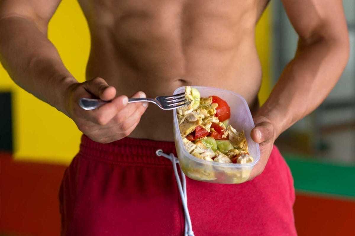 Первым делом нужно обеспечить снижение калорийности рациона в среднем на 50%. То есть атлет должен сильно урезать калории за счёт углеводов, а количество белка можно повысить на 20-30%. При всём этом количество жиров стоит оставить на том же месте, и ни в коем случае не исключать овощи, особенно зелень.