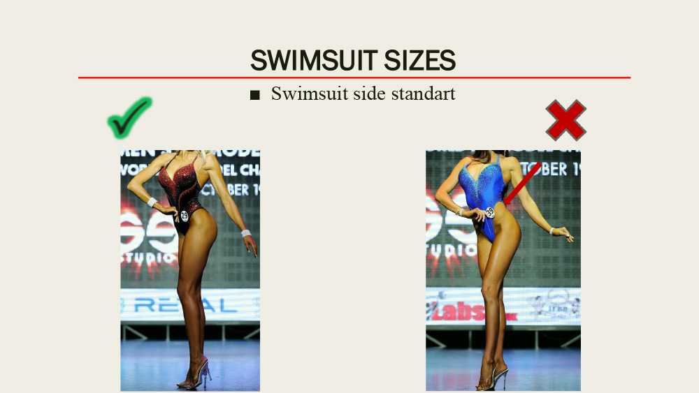 И здесь есть свои нюансы, девушки не должны быть слишком пересушенными, изможденными, кожа не должна “просвечиваться”, за это тоже снимают баллы. Девушка нигде не должна перестараться, ее главная цель – показать спортивное телосложение и красивые пропорции при отсутствии жира.
