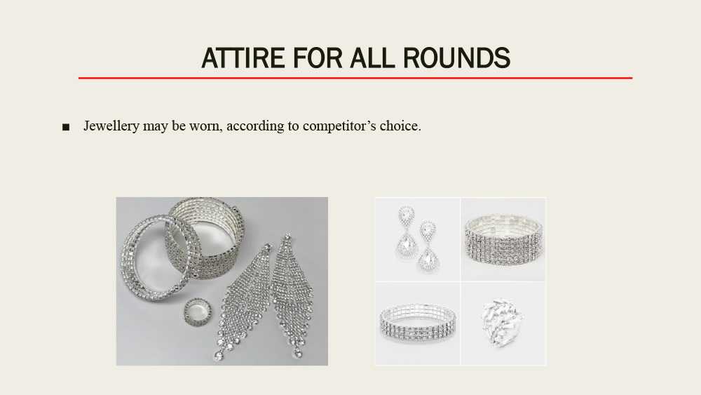 Во всех мужских дисциплинах на сцене запрещено ношение любых предметов (обувь, очки, часы, кулоны, цепи, серьги, браслеты и т.п.) за исключением обручального кольца.