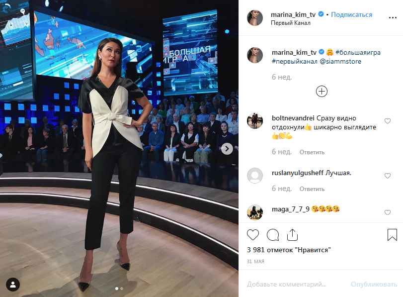 В 2018 году она вновь сменила формат, став модератором ток-шоу «Большая игра», выходящем на Первом канале. Ким не случайно появилась в этой программе, так как по своему образованию международник-американист.
