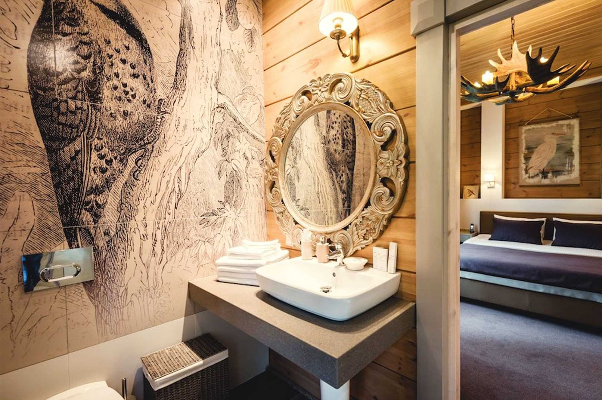 Эко-отель находится в 1,5 часах езды от Москвы. На огромной территории расположена гостиница с просторными номерами, коттеджи (удобно, если отдыхаешь большой компанией), банный комплекс с бассейном, хаммамом и соляной комнатой, спа-комплекс, ресторан и детский клуб. Есть где разгуляться.