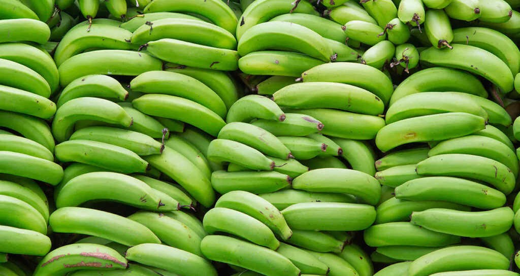 Исключение составляют плантайн, плоды которого содержат в основном крахмал, а не глюкозу и фруктозу, и зеленоватые плоды сорта кавендиш.