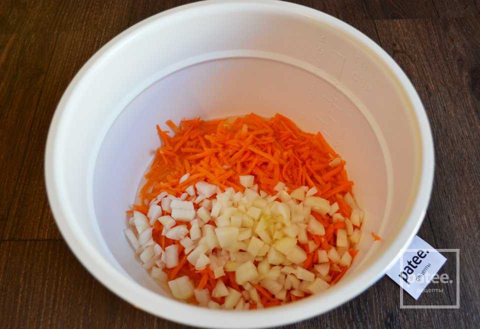 3.Следующими обжариваются кольца лука до румяности. Все овощи нужно сложить в одну емкость (кастрюлю).