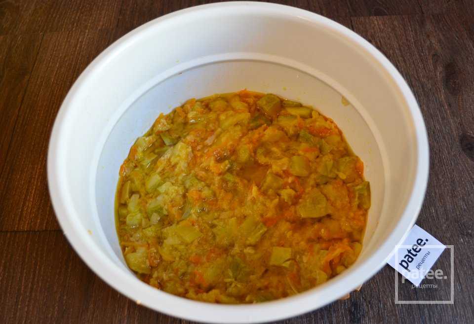 6. Румяные кабачки перебиваем при помощи погружного блендера либо перекручиваем в мясорубке.