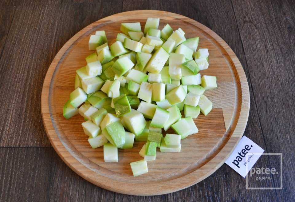 2. Нарезаем кабачковую мякоть небольшими кубиками.