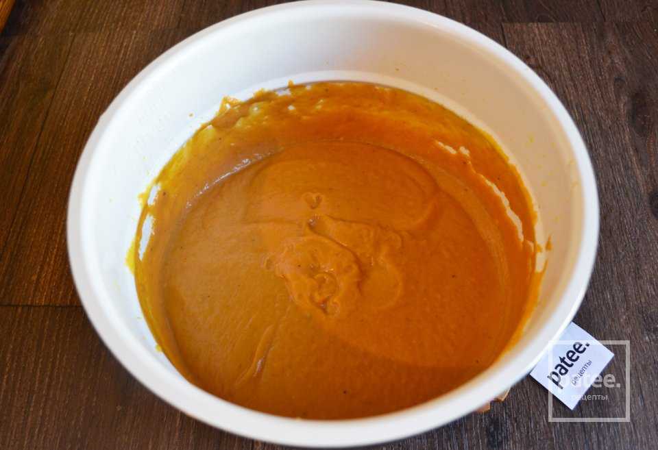 5.Всю обжарку нужно перебить блендером, чтобы получилась однородная гладкая масса. Пока она будет зеленоватого цвета.