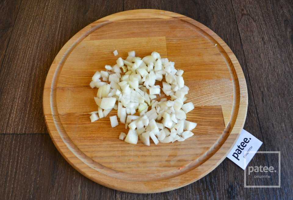 10. Кусочки лука обжариваем на растительном масле до золотистости.