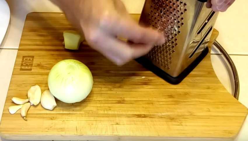 4. Репчатый лук, имбирь и чеснок очистите. Измельчите мелко или пробейте блендером.