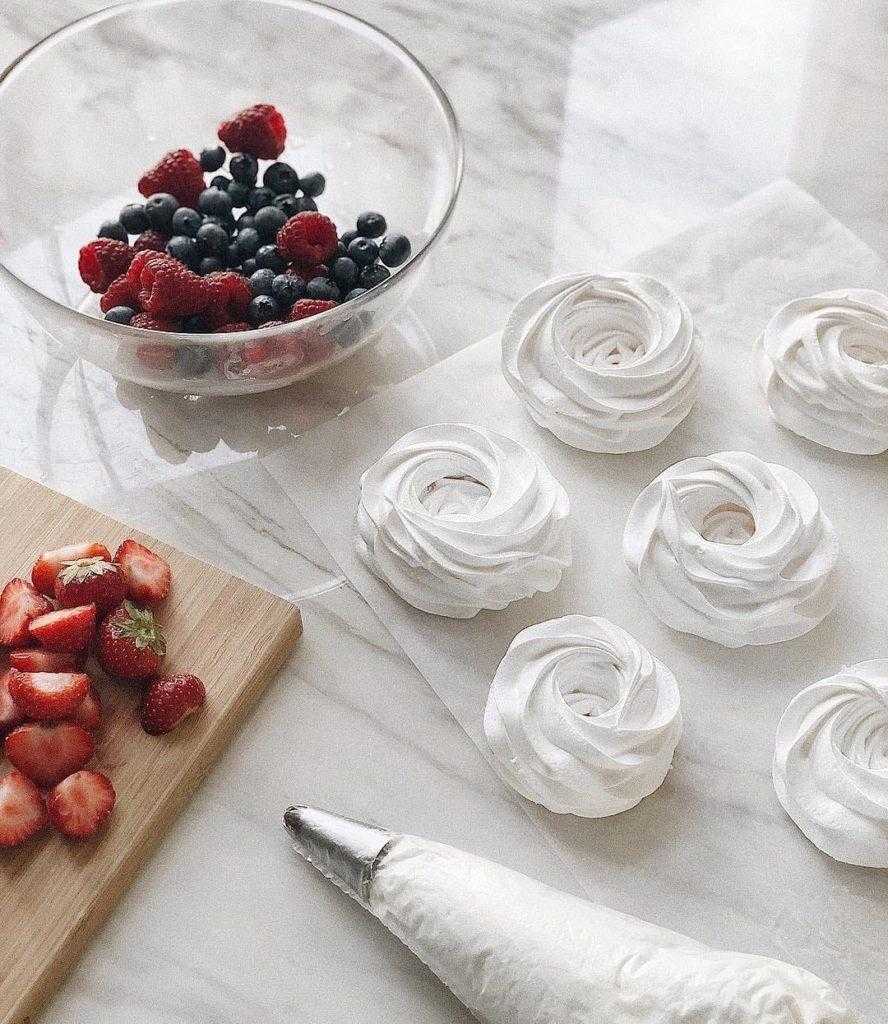 Пример использования альбумина – мои любимые простейшие фруктовые меренги. Их можно использовать как самостоятельный десерт или же в качестве декора.