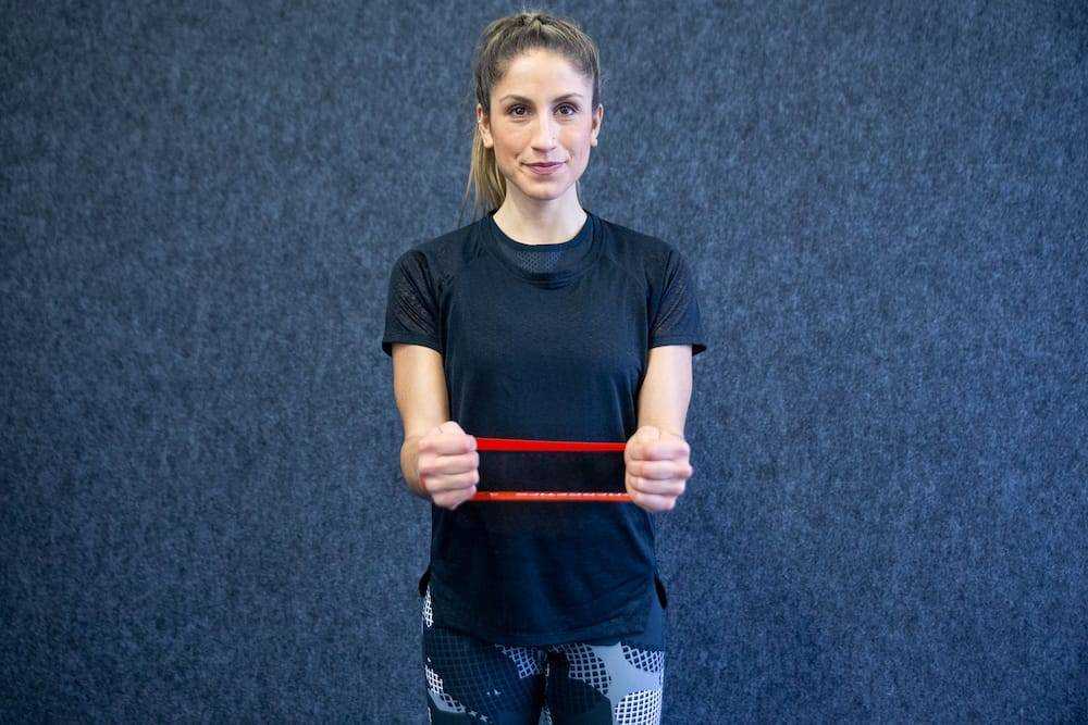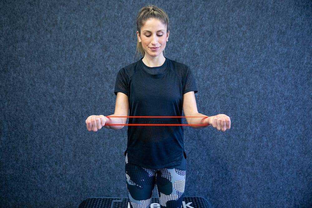 - Переместите предплечья в сторону, чтобы растянуть ленту.