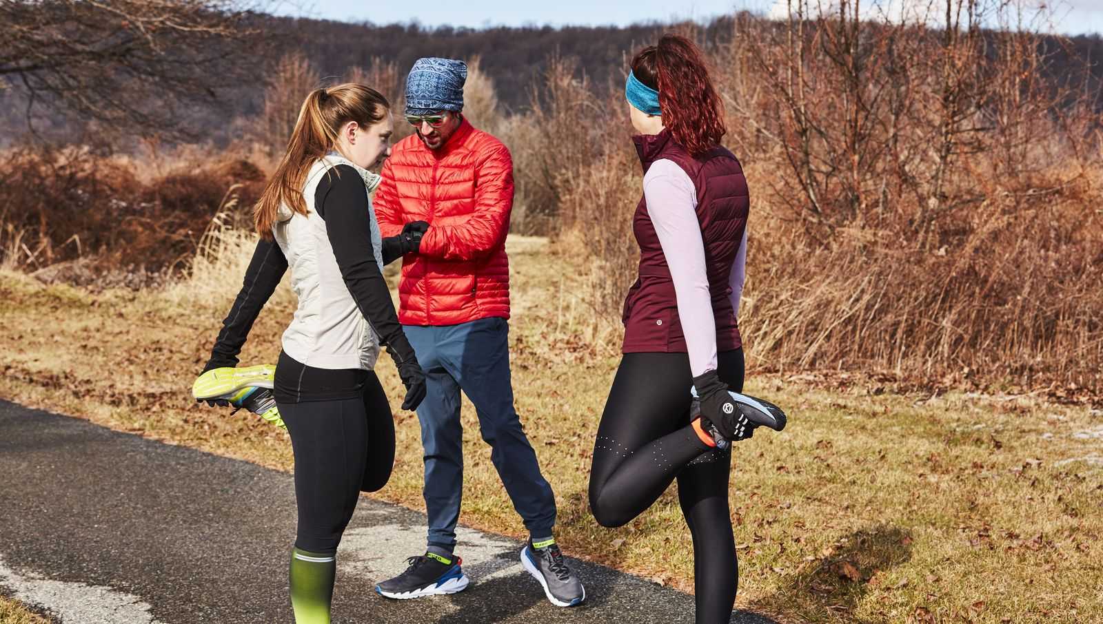 Не позволяйте снегу мешать вам оставаться активным. Когда температура падает, выбирайте мягкую куртку или жилет, надетый с компрессионным и теплоулавливающим верхом под ним. Леггинсы на флисовой подкладке хорошо работают при низких температурах. Убедитесь, что вы носите кроссовки с хорошим сцеплением. Избегайте холодных пальцев, надев перчатки и защитите уши, надев шапочку.