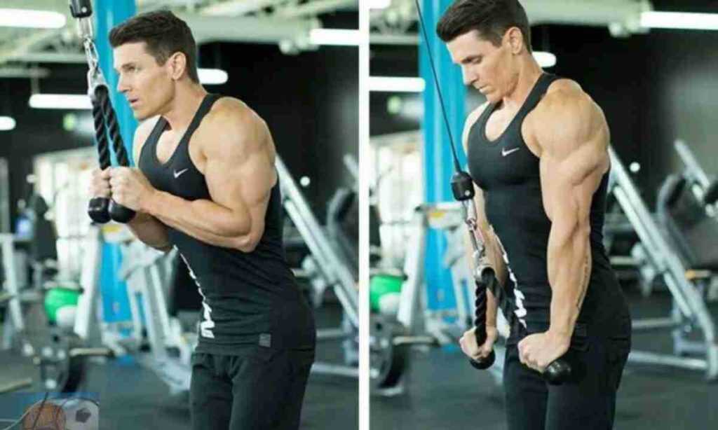 Выполнив 3 подхода на бицепс, отдохните 3 минуты и далее переходите к трицепсу.