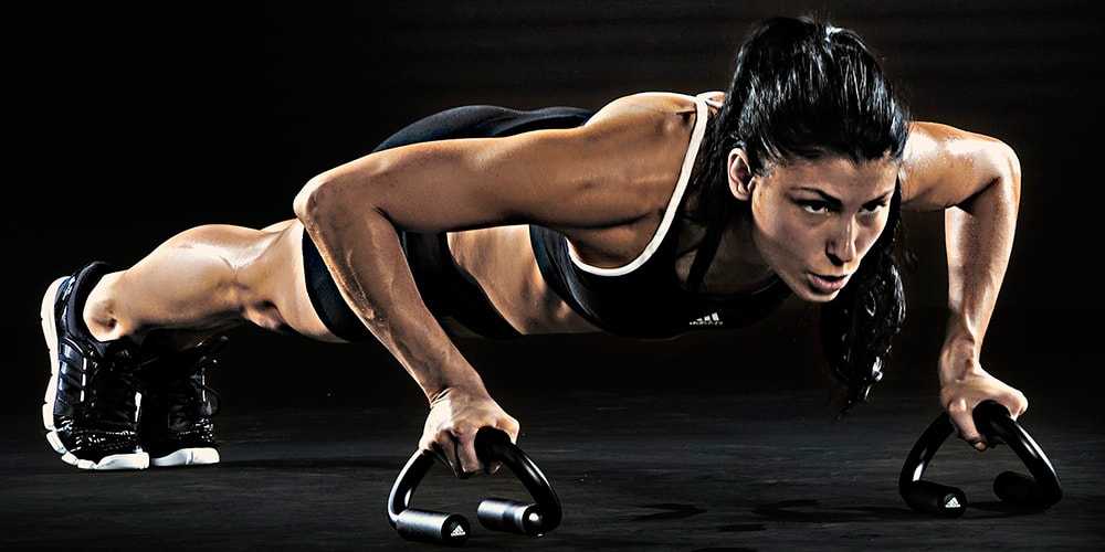 Рост нагрузки также обеспечивается увеличением амплитуды движения. Для этого положи под ладони несколько книг или воспользуйся специальными платформами. Кроме того, если положить ноги на возвышенность, выполнять упражнение станет еще тяжелее.