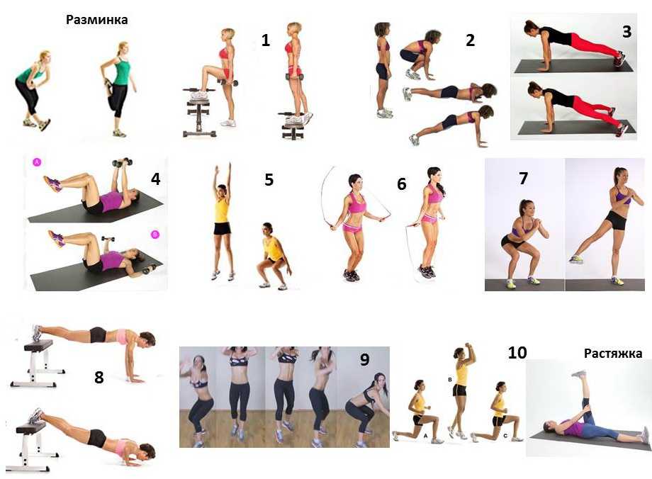 С ее помощью вы сможете быстрее похудеть (то есть в итоге больше потратите калорий, с учетом эффекта EPOC – прим. Зожника), но учтите – придется попотеть. Круг состоит из подходов в каждом упражнении, которые выполняются друг за другом без пауз. Если осилите, то потом можете повторить еще разок, и еще, и еще.