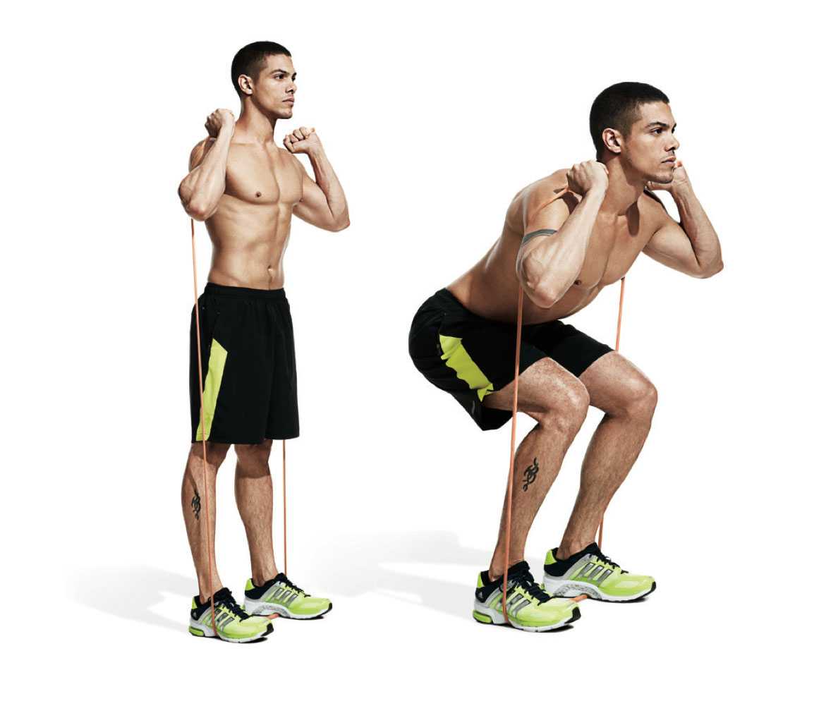 5. Приседания со жгутом