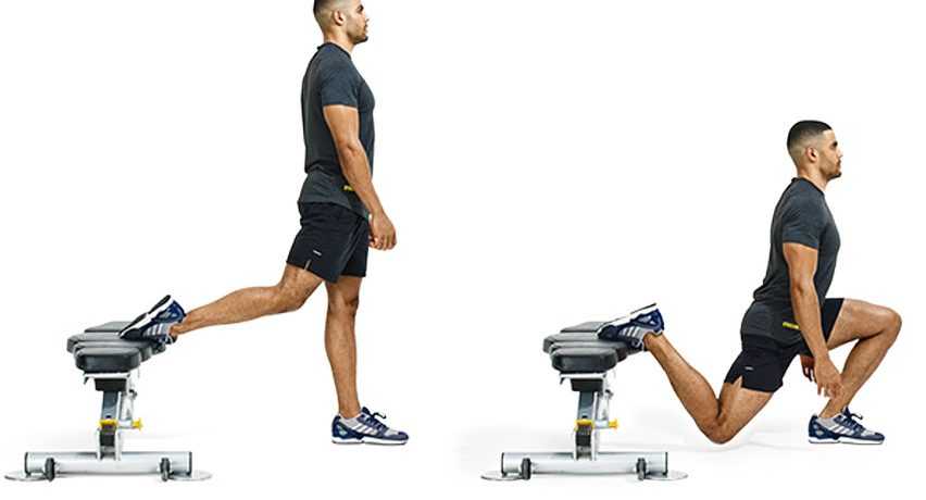 - Выполнять выпад вперед одной конечностью так, чтобы колено другой касалось пола.