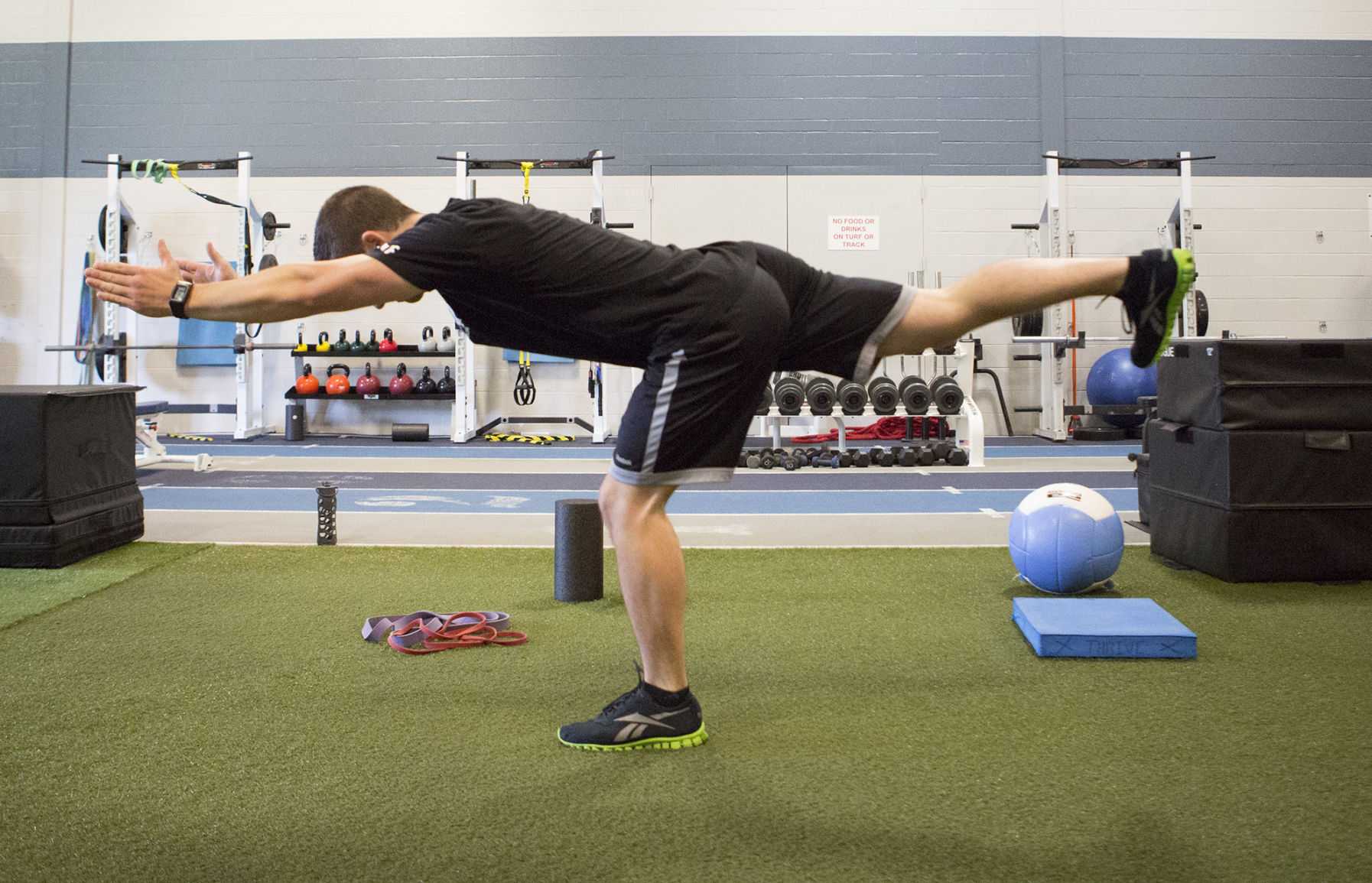 Для каждой ноги повторить упражнение не менее 10 раз для новичков. Продвинутым спортсменам разрешается использовать утяжелители до 4 кг в каждой руке и делать не менее 20 повторов для каждой конечности.