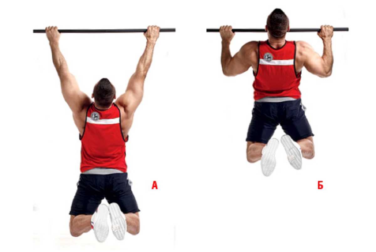 - подтягивания с полным хватом, создавая максимальное напряжение, когда подбородок приближается к перекладине.
