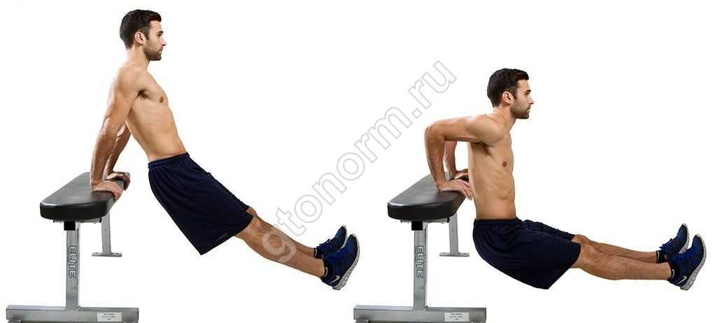 - Отжимания на брусьях.