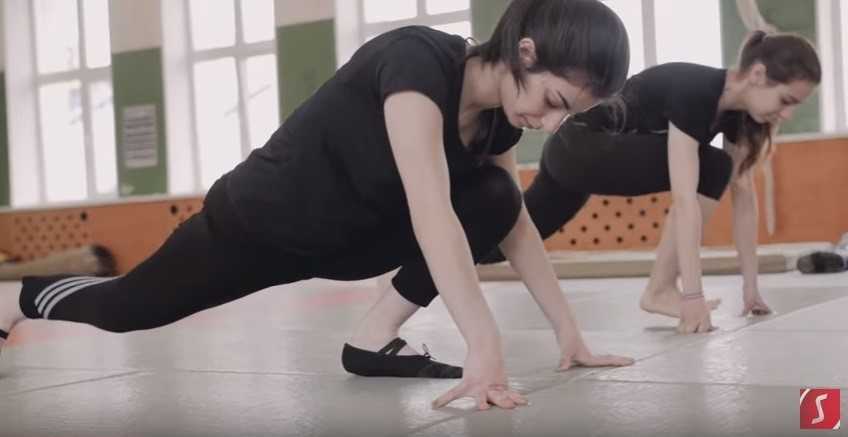 Традиционно тренировку начинайте с разминки, потому что качество и безопасность тренировки зависят от подготовленности ваших мышц и связок. Для выполнения aerial нужно обладать хорошей растяжкой мышц ног. Она позволит сделать максимально амплитудный мах и, соответственно, набрать хорошую скорость, а также качественно приземлиться.