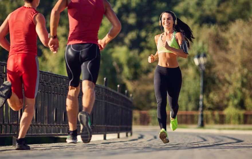 Приступайте к бегу, начиная с быстрой ходьбы, ускоряя темп. Придерживайтесь пульса 115-135 ударов в минуту.
