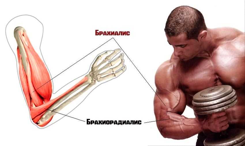 Качественная анатомия мышц рук требует хорошего развития этой группы мышц. Плечевая мышца (брахиалис) создает для бицепса поддерживающую платформу, как бы выталкивая его на “поверхность”. Брахиалис активируется при статическом сгибании локтя и работает во всех упражнениях на бицепс, однако лучше всего он “цепляется” при подъемах штанги на бицепс обратным хватом.