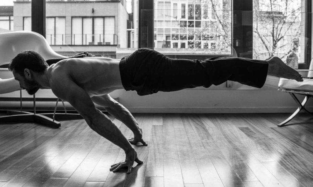 Чтобы обучиться верному исполнению стойки, изначально необходимо уметь делать отжимания. Это упражнение помогает укрепить мышцы кора и рук, которые оказываются задействованы при позе вверх ногами.