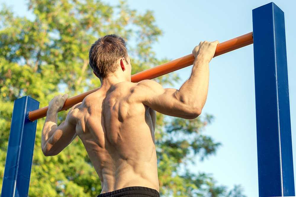 Этим упражнением можно великолепно растянуть мускулатуру и нарастить массу. В идеале для проработки выполнять подтягивание с руками, расставленными на расстоянии в 25 сантиментов. Основная техника:
