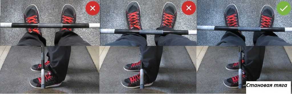 | Изменение положения ног | Колени, будучи слегка согнутыми, должны оставаться в том же положении до окончания упражнения. Голени и стопы сохраняют своё изначальное положение, пятки не отрываются от пола. Не нужно подталкивать штангу вверх коленных суставов |