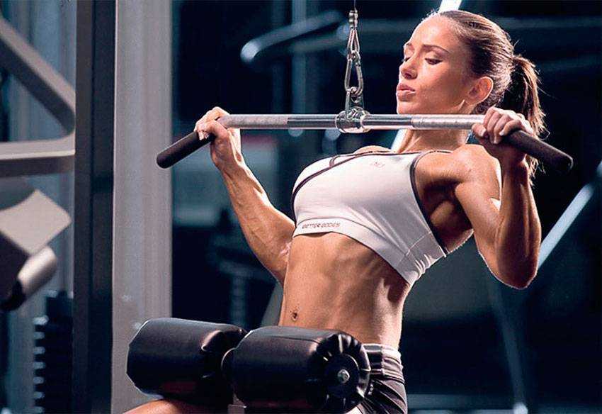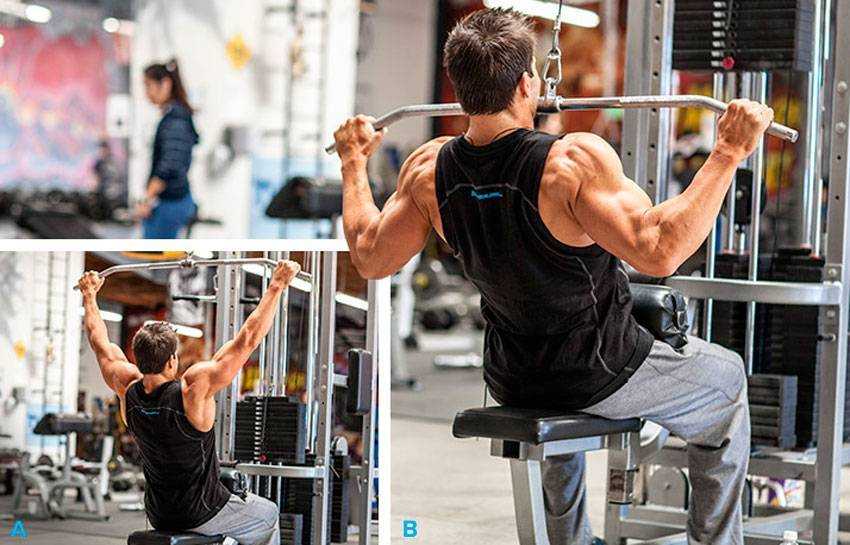 - Для широчайшей мышцы спины – тяга вертикального и горизонтального блоков.