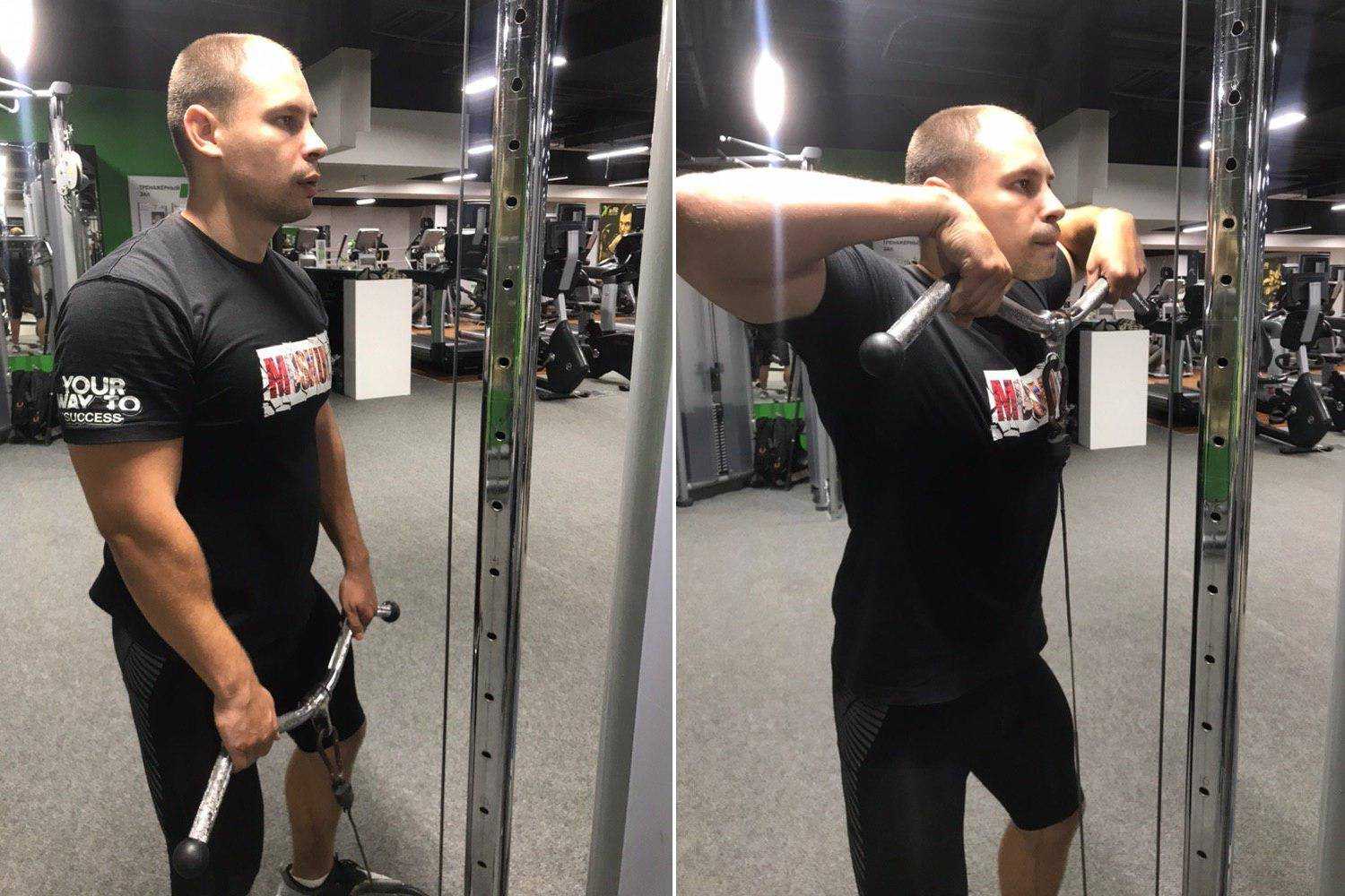 Профессиональные бодибилдеры отмечают еще один плюс блочного тренажера – безопасность. Так как груз удерживается на направляющих, снижается вероятность получения травмы. Техника протяжек в кроссовере в целом аналогична тренингу со свободными весами. Единственное условие – необходимо стоять близко к нижнему блоку, чтобы вектор нагрузки был направлен именно на плечевой пояс.