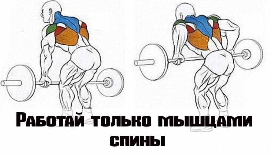 - выполнять тягу с помощью рук, не задействовав мышцы спины.