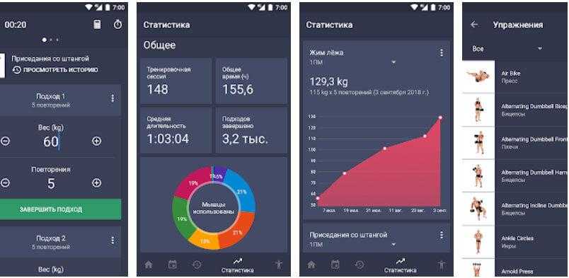 Приложение идеально подходит для начинающих. Поможет освоить базовые техники бодибилдинга. Самостоятельные тренировки с помощью этого приложения позволят получить рельефное и сильное тело. В каждой программе расписано количество подходов, повторов и дни недели, когда ее выполняют. Упражнения на проработку всего тела в виде списка, где они расставлены по алфавиту, что значительно облегчает поиск. Детальное описание техники выполнения упражнений, анимационный и видео-формат, позволяют избежать ошибок. Таймер, учет результатов. Для продвинутых спортсменов предложены платные программы.
