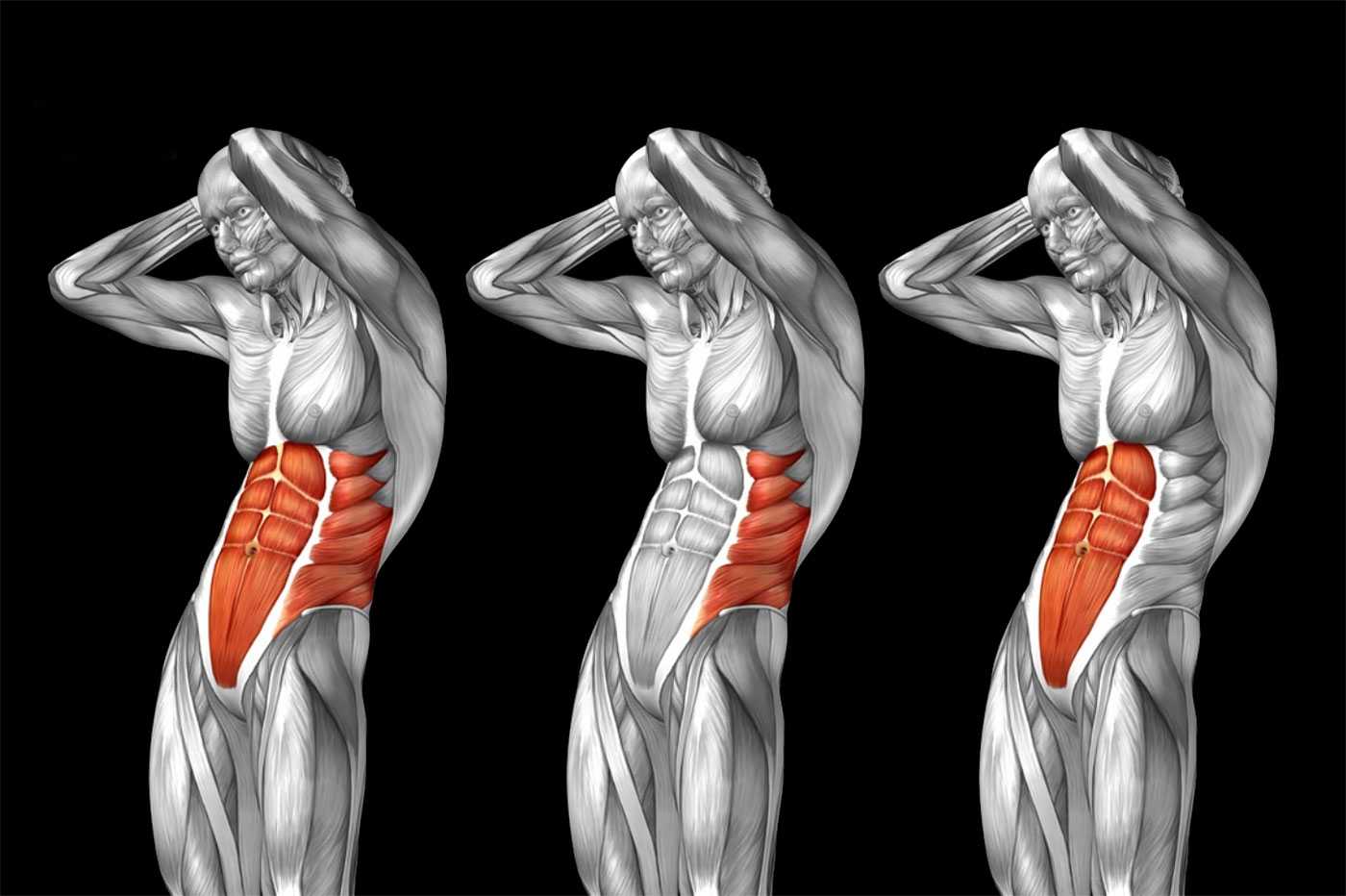 Важно равномерно прорабатывать все отделы мышцы пресса, не забывая про поперечную и косые мышцы живота