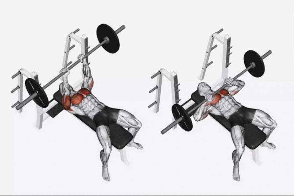 Жим на скамье под наклоном делают по следующему алгоритму: