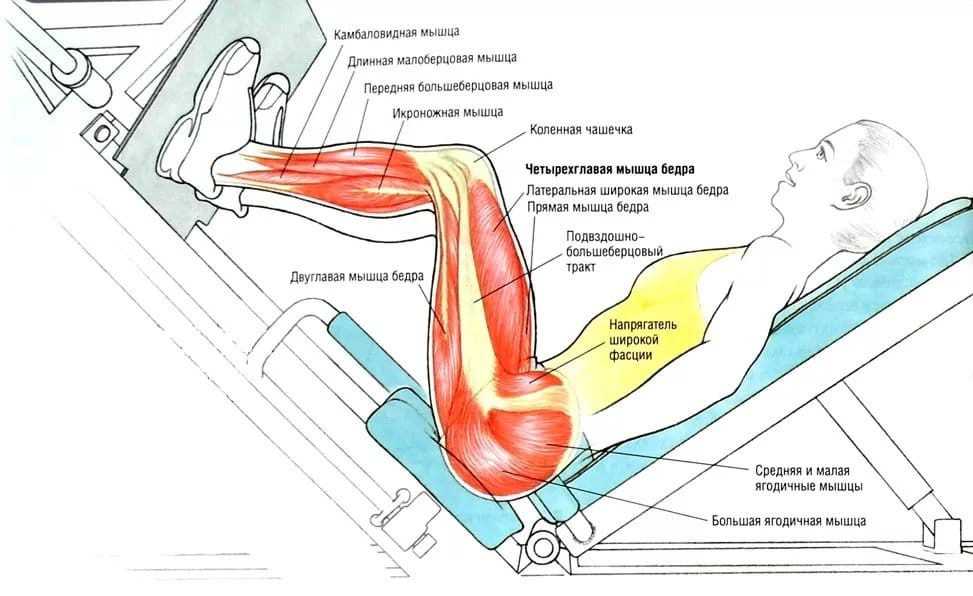 Техника выполнения жима ногами лежа в тренажере, правильная постановка ног